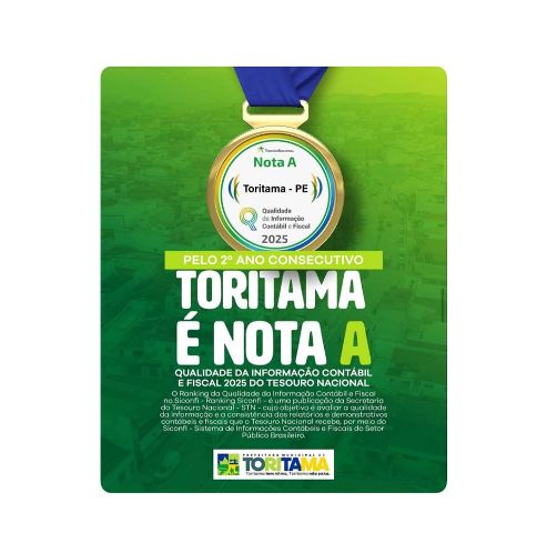 É com grande orgulho que a Prefeitura de Toritama anuncia mais uma conquista para o município: pelo segundo ano consecutivo, Toritama recebeu Nota A no Ranking de Qualidade Fiscal do Tesouro Nacional. 🎉